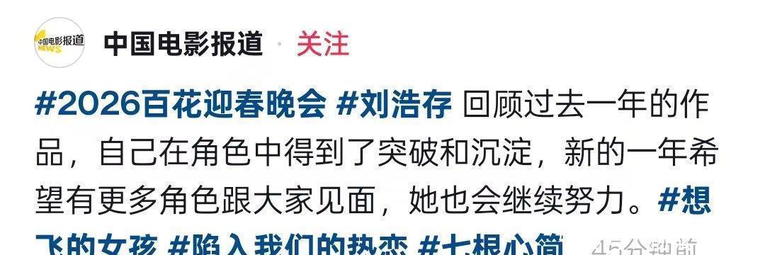 1月27日那场百花迎春的晚会,让刘浩存成了大家热议的焦点。