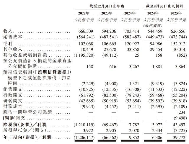 于2023年、2024年及2025年截至9月30日止九个月,该公司实现年/期内利润分别为-6656.2万元、985.2万元、3977.2万元人民币。