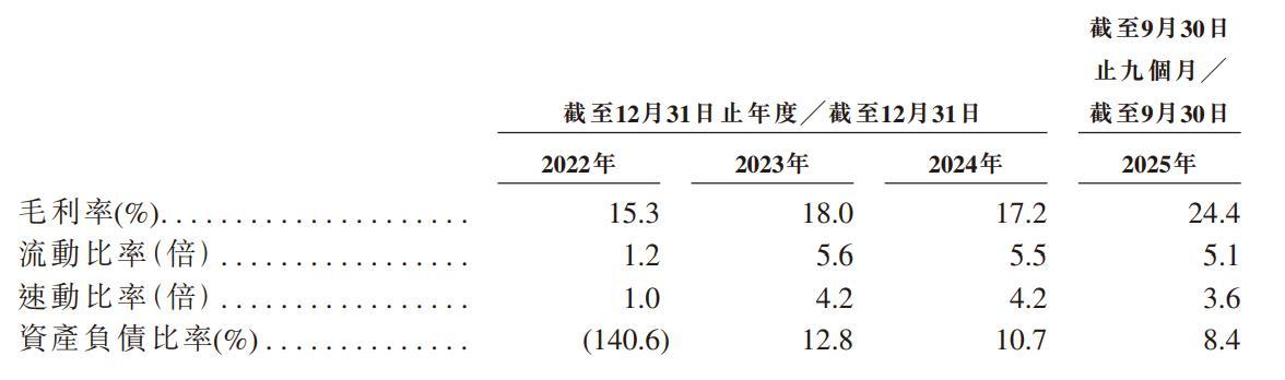 于2023年、2024年及2025年截至9月30日止九个月,该公司毛利率分别为18%、17.2%、24.4%。