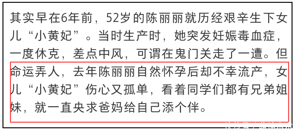 网友的质疑和不解也是有原因的,毕竟陈丽丽是在52岁的时候高龄产下大女儿的,当时在怀孕期间就已经产生各种并发症,生产过程更是出现妊娠毒血症,一度休克送ICU,差点送命。